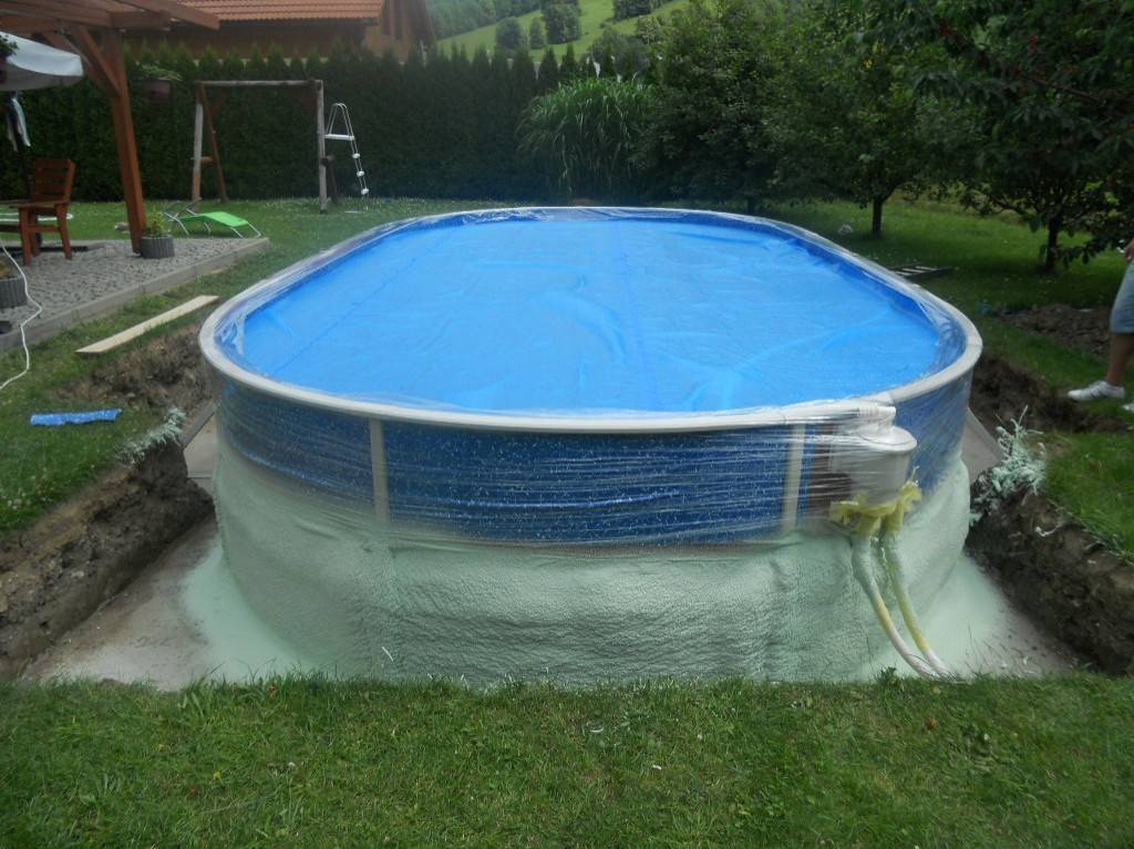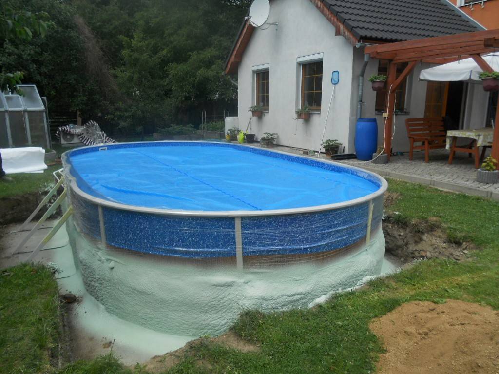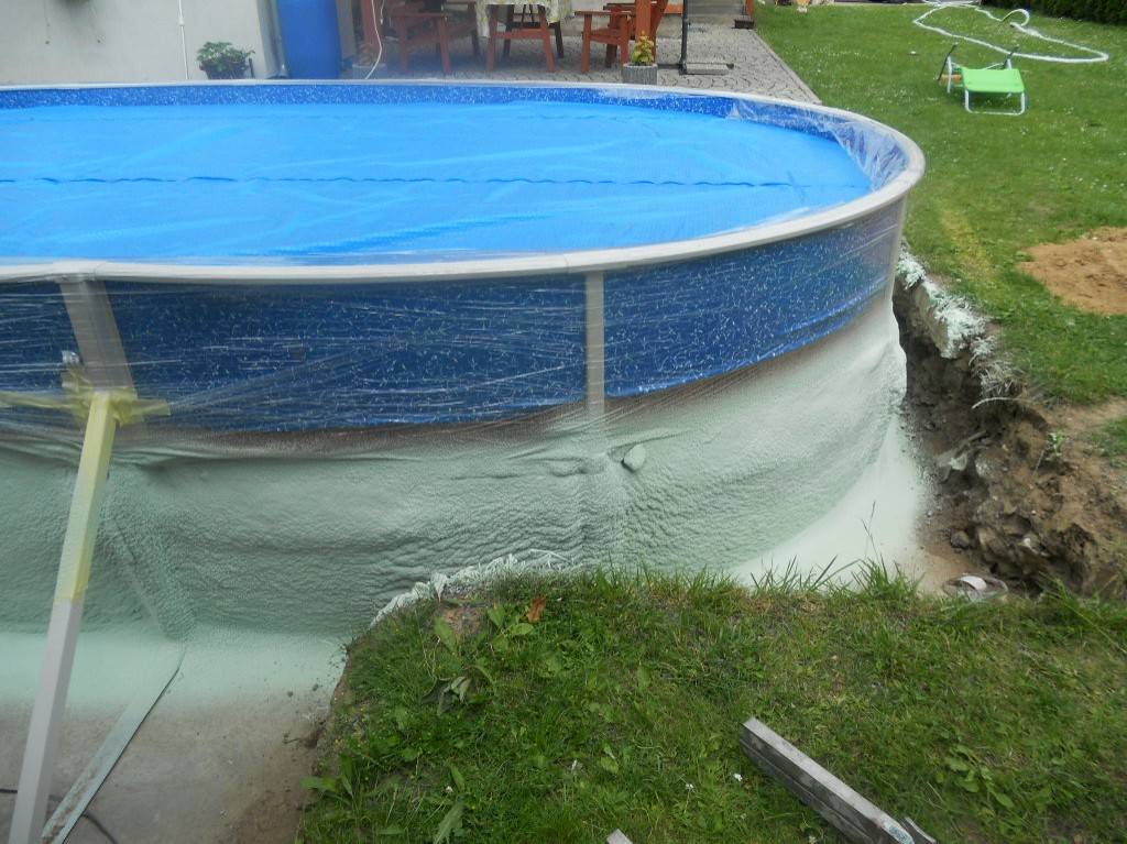 Tepelná izolace bazénu Česká Ves Tepelná izolace spodní části bazénu tvrdou izolační pěnou. Fotografie