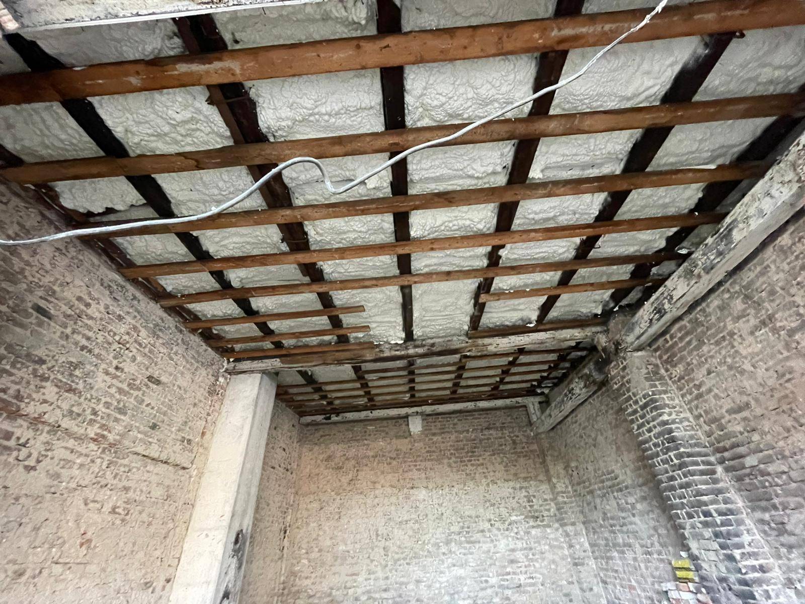 Izolace garáže - aplikace do rastru na trapézový plech.