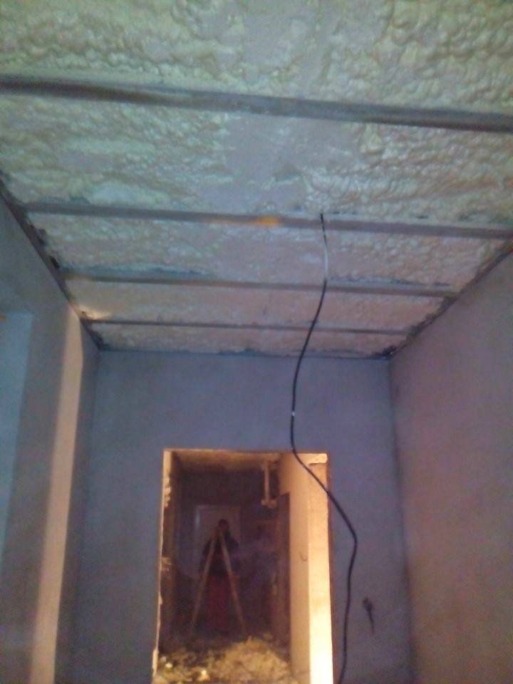 Předmětem zateplení byl strop v Oznici. Izolace byla aplikována do předem připravených sádrokartonových roštú. Přelézající pěna byla ořezána.