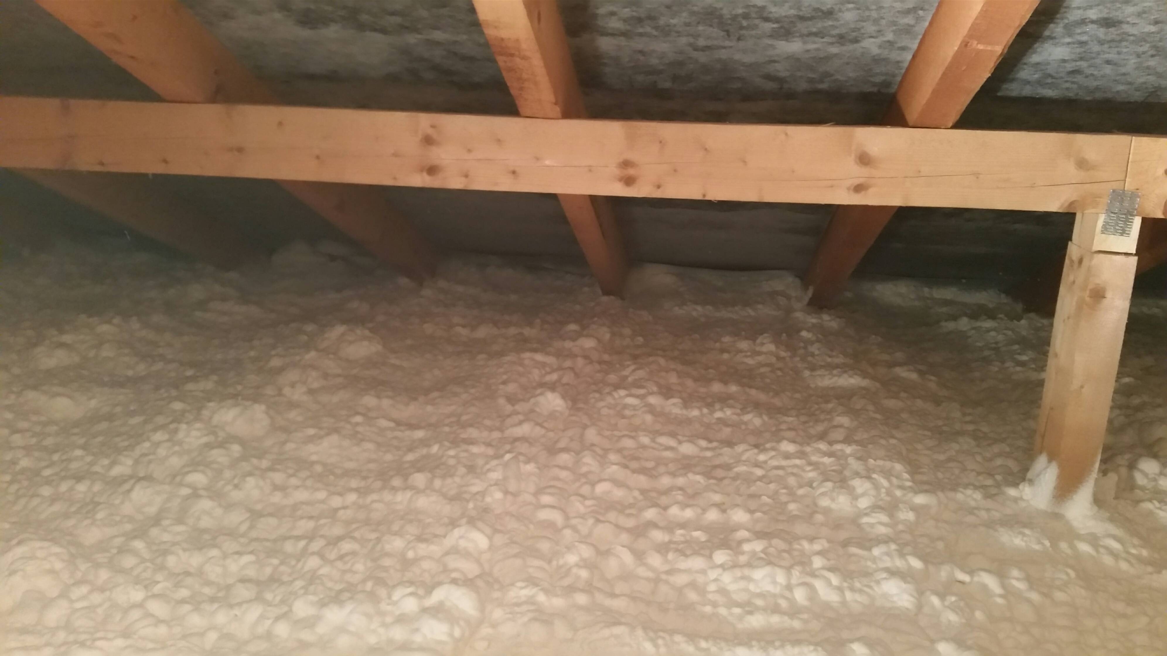 Předmětem zateplení byl strop RD v dolním Němčí. Izolace se aplikovala na předem připravenou parotěsnou folii. Posléze po mokrých procesech na stavbě bude zespodu izolace zaklopena SDK podhledem
