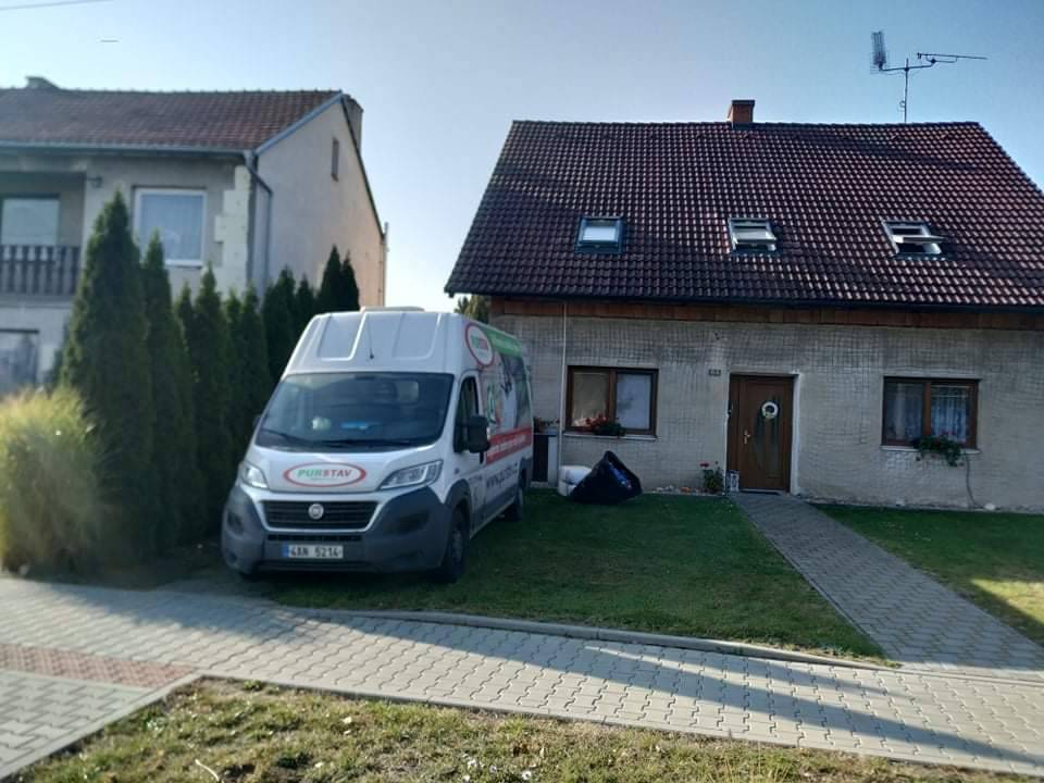 Takže dneska se izolovalo nejprve v Novosedlech - to byla izolace šikmin do připraveného SDK rastru s následným ořezem pěny a pak kluci popojeli do Žerotic, kde provedli izolaci stěn a podlahy RD. Dobrá práce!