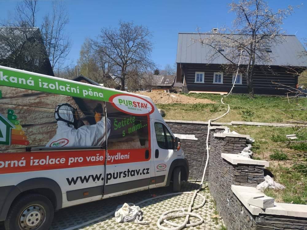 Izolace podkroví měkkou pěnou EKO S310. Aplikace mezi krov.