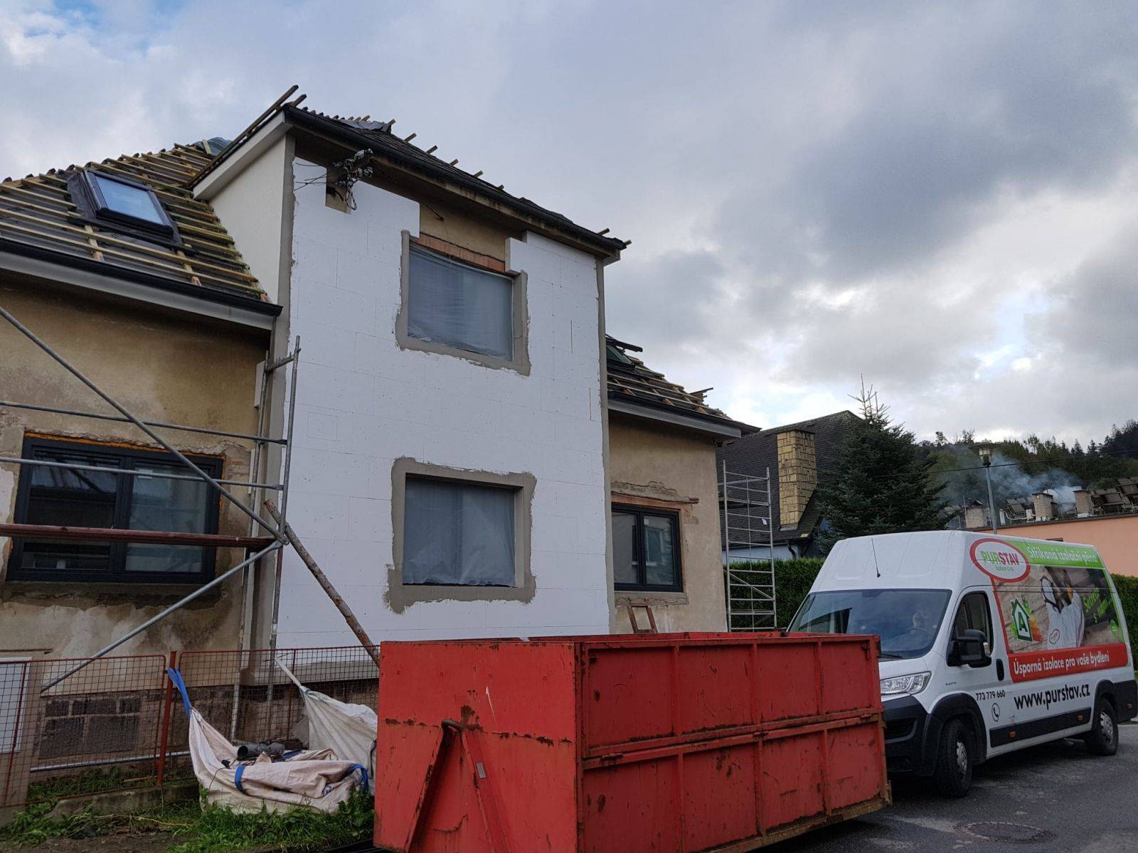 Ústí nad Orlicí - Kerhartice Aplikace měkké pěny do připravených SDK rastrů v podkroví. Odkaz na fotografie