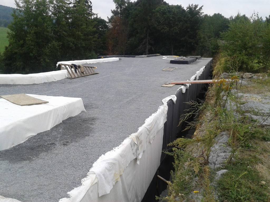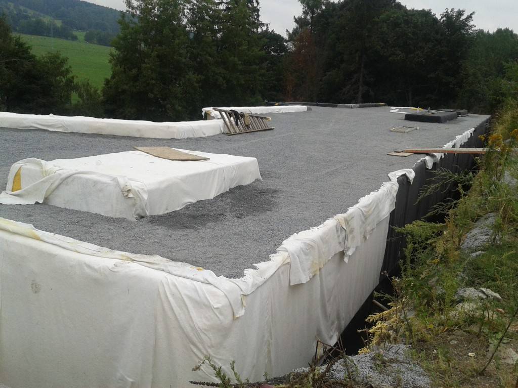 Tepelná izolace a hydroizolace ploché střechy a obvodových stěn podzemního domu, Vrbno pod Pradědem Tepelná izolace a hydroizolace ploché střechy a obvodových stěn podzemního domu, Vrbno pod Pradědem Fotografie