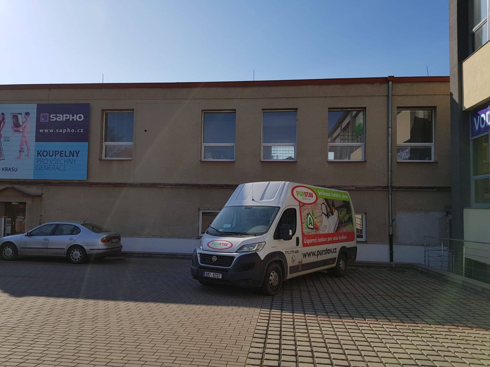Tepelná izolace stropu kanceláří měkkou pěnou. Síla nástřiku 20 cm.