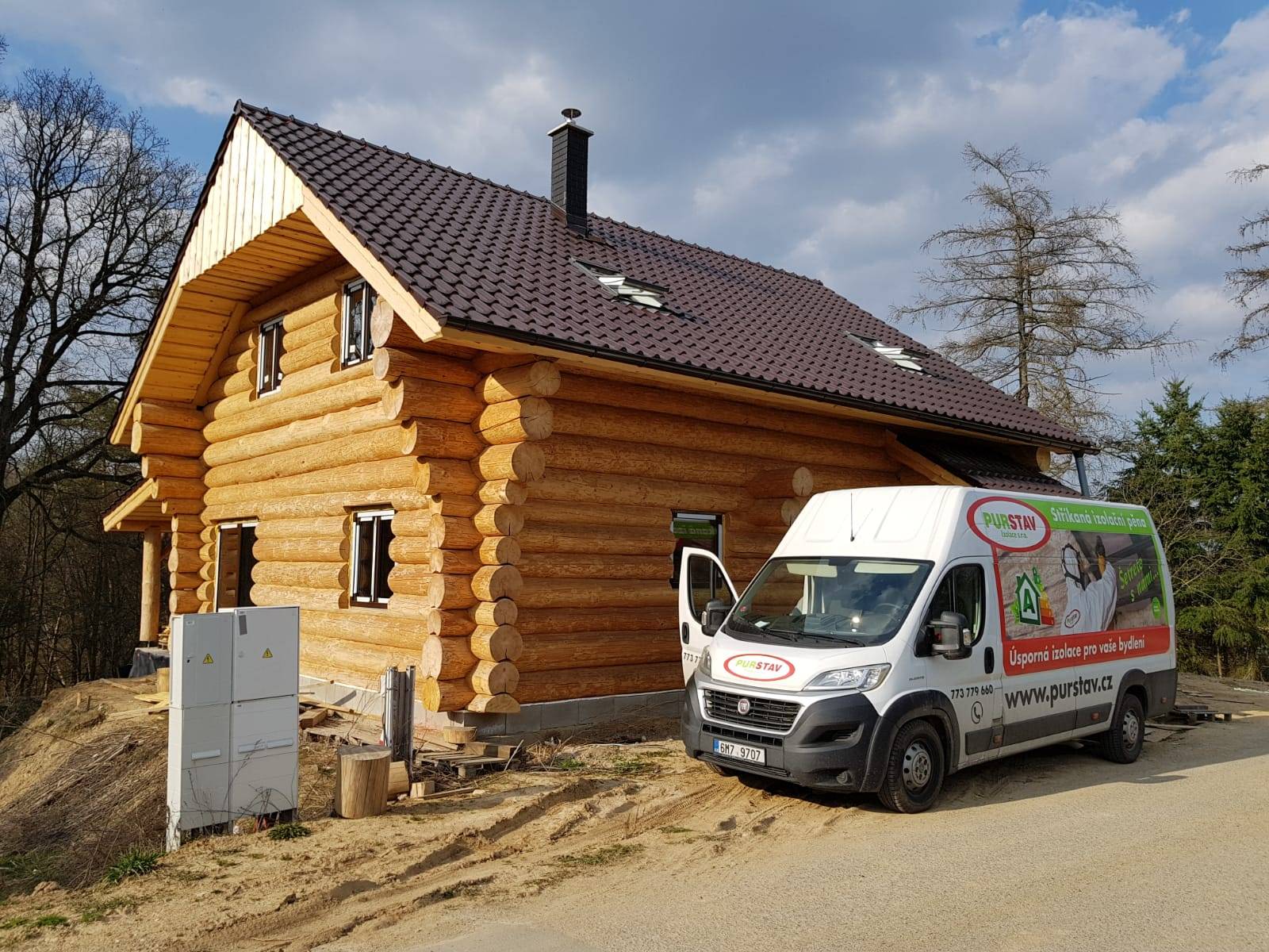 Zateplení střechy v podkrovní části domu měkkou pěnou do připravených SDK rastrů. Po aplikaci je pěna začištěna a přichystána na záklop.