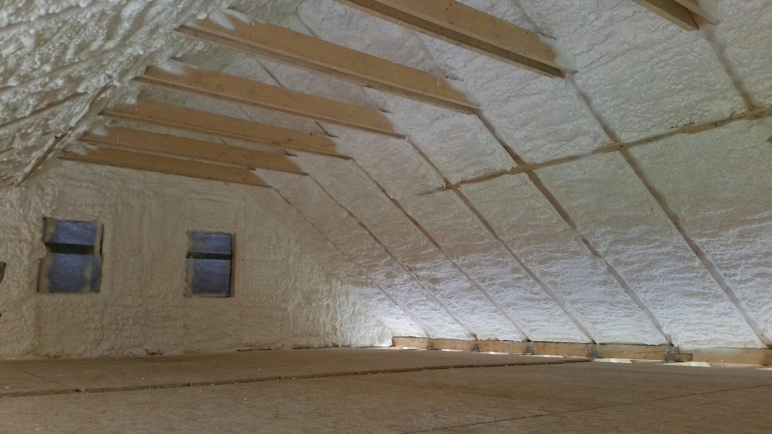 Předmětem zateplení byla střecha v podkrovní části domu Srubu a štítové zdi. Mezi krov byla aplikována měkká pěna v síle nástřiku 19cm.